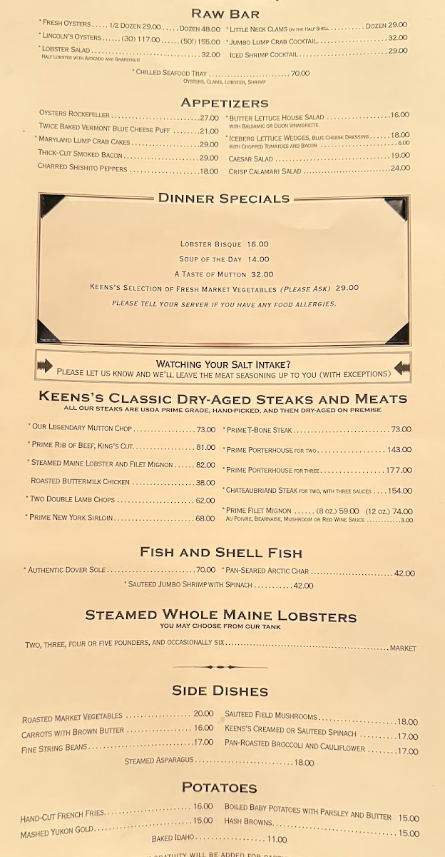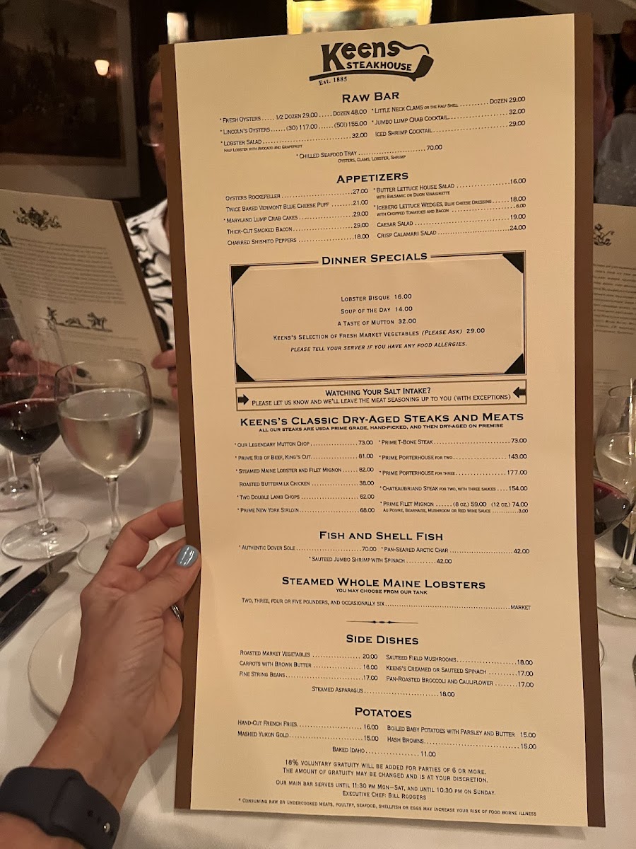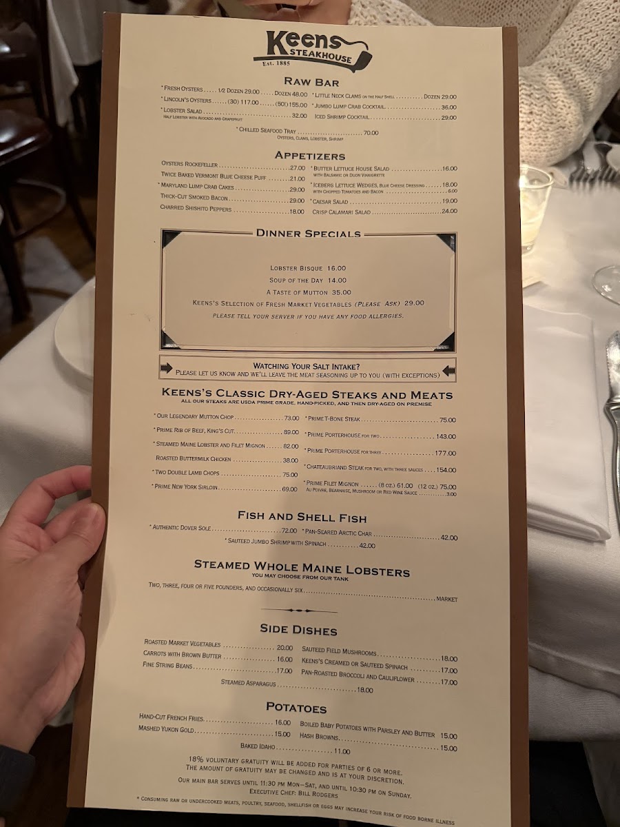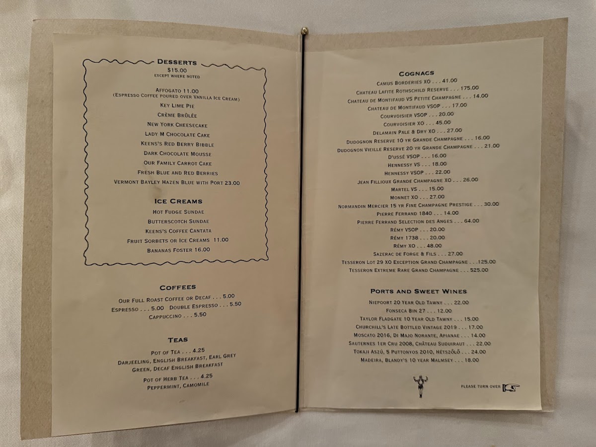 The ambiance is lively yet intimate, perfect for both couples and large gatherings. Guests have raved about the exceptional service delivered by the attentive staff, whether it’s a birthday celebration or a quiet dinner. Pam Killoran noted the warm welcome and accommodating service that added a special touch to her family’s celebration, demonstrating Keens' commitment to creating memorable dining experiences for all guests.